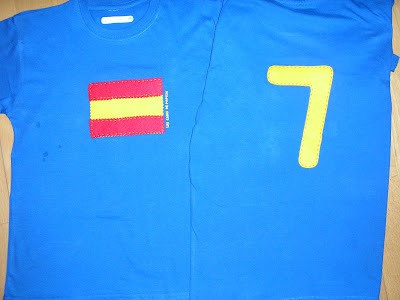 Estas son las camisetas para Álvaro y Gonzalo...Querían la bandera de España por delante, y el 7 de Villa detrás..